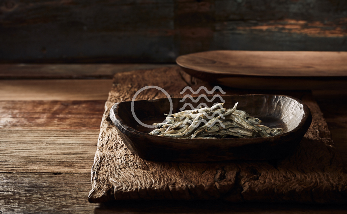 本产品制作商巴达罗从大海里挑选新鲜的干鱼和海藻,并以实惠的价格出售。这在logo设计上,完美体现出来了。