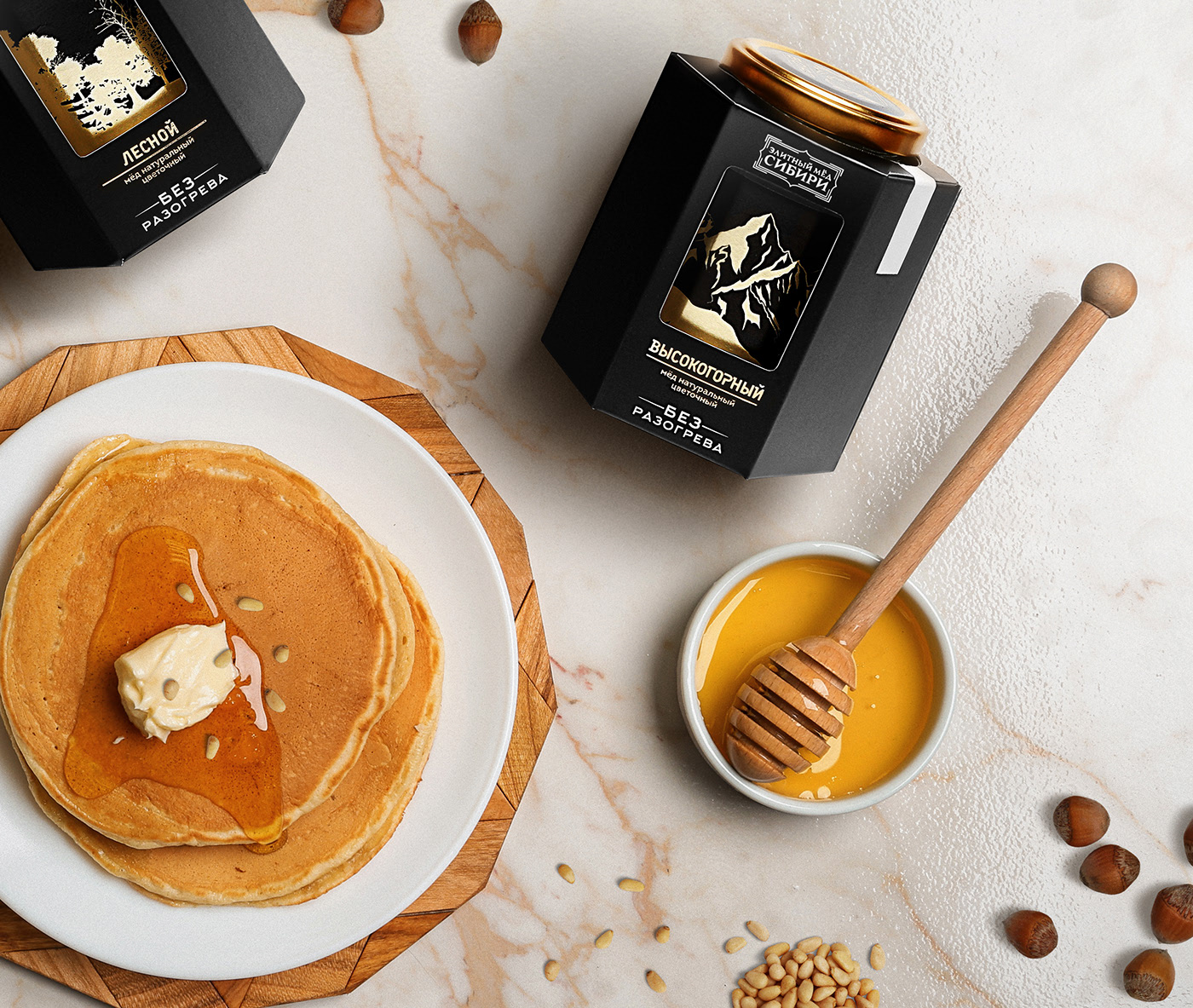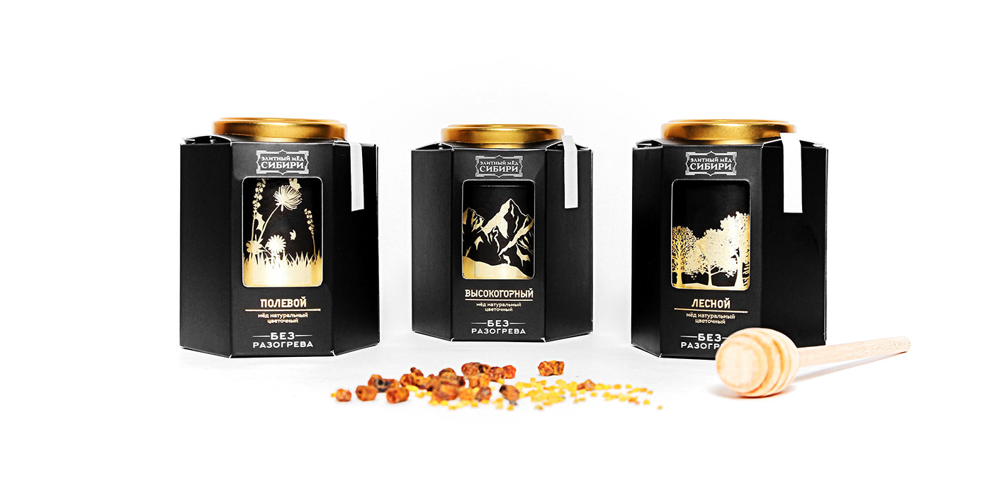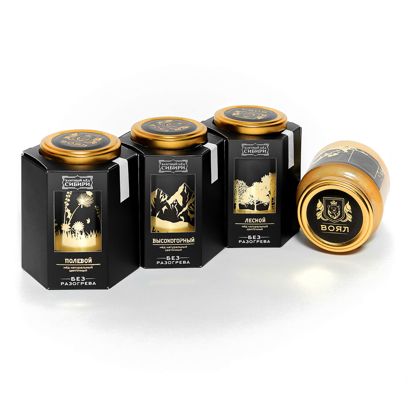 2016年,我们完成了VOYAL商标的多项设计任务,其中包括这款西伯利亚风的特产蜂蜜包装设计。