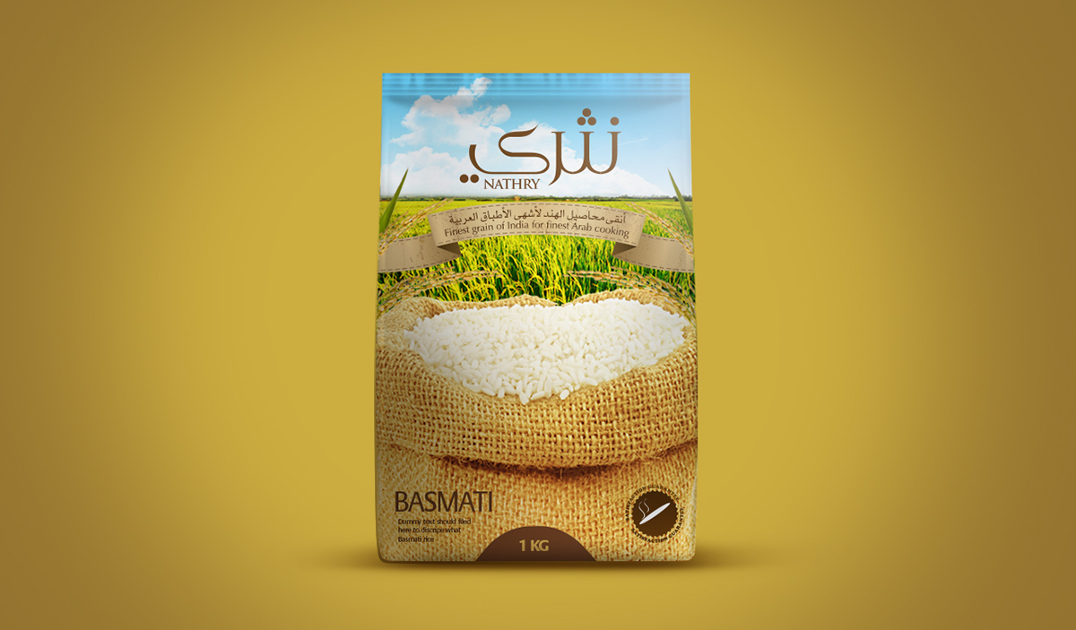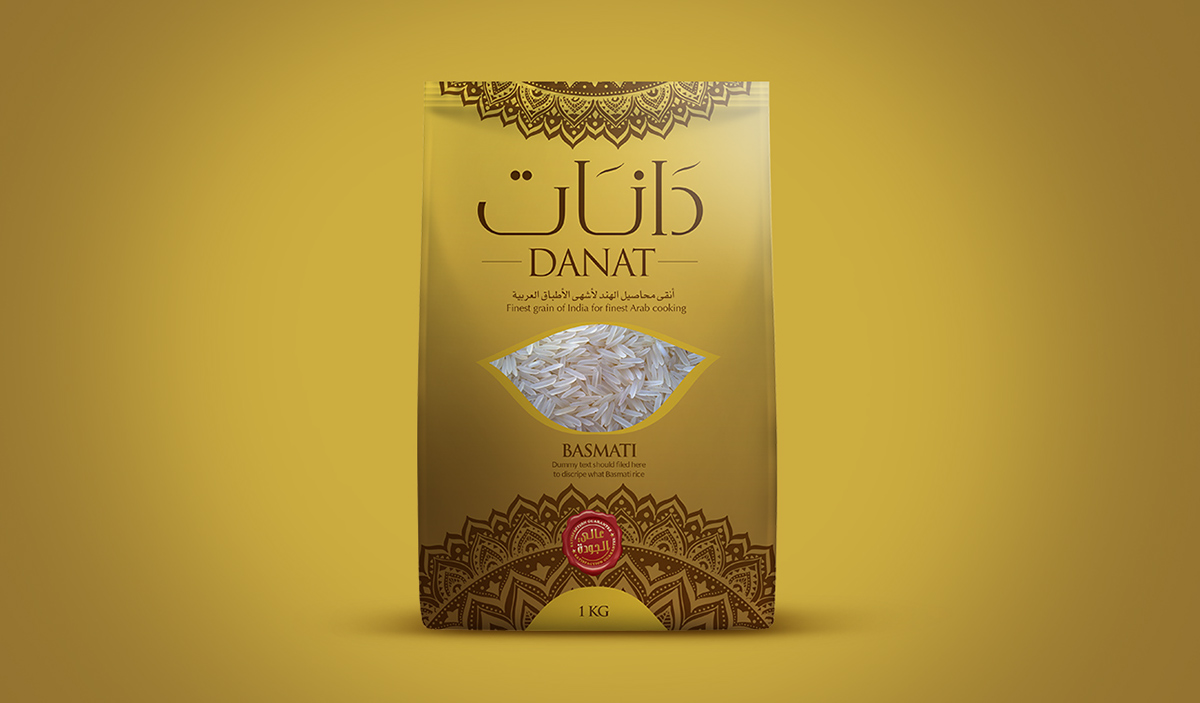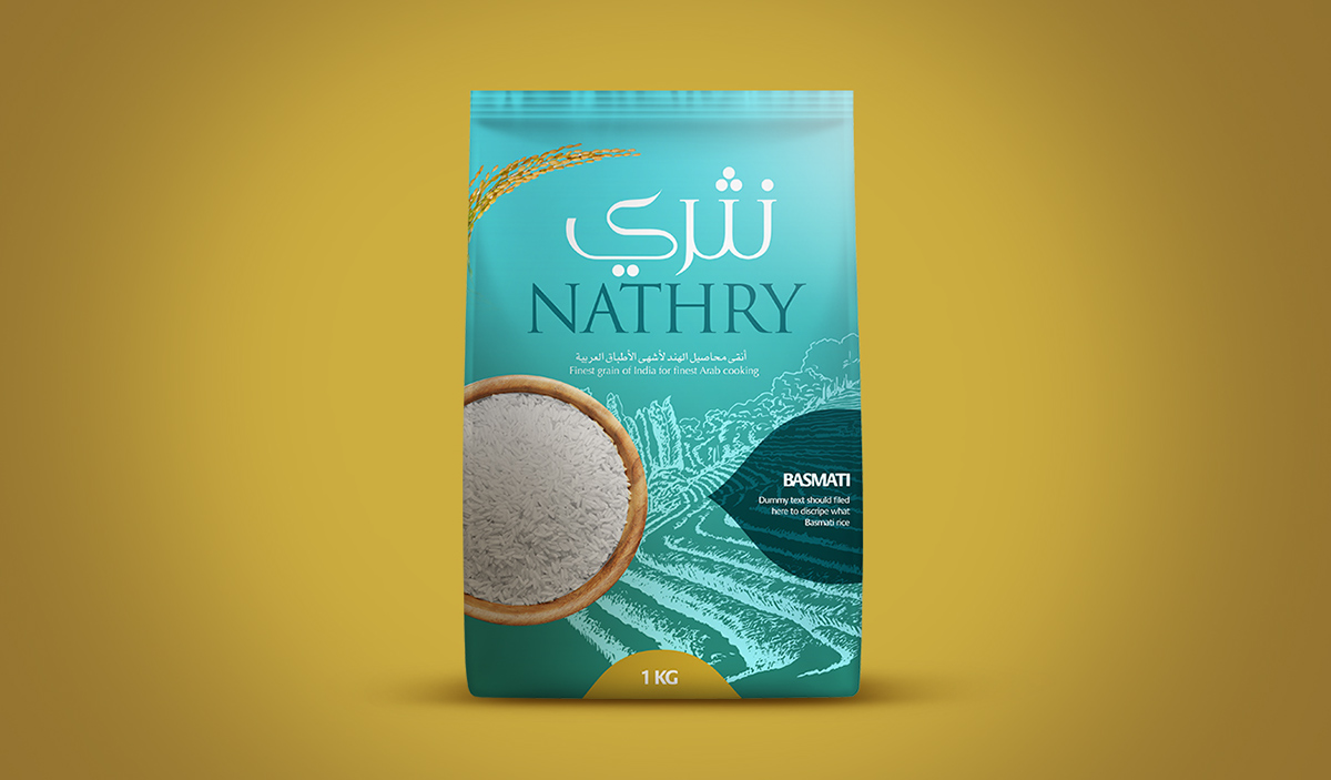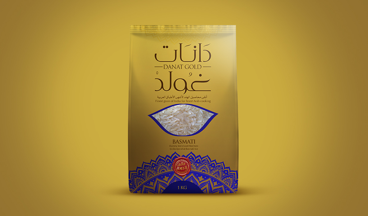 这款大米包装正是如此,充满民族特色的花纹设计,异域风情的字体设计,无一不像消费者传达出,我就是正宗、高档大米的讯息。