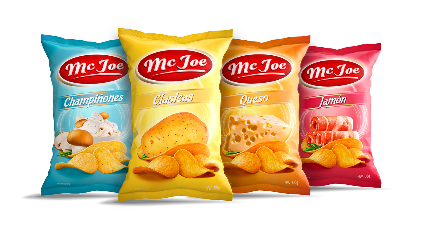Me Joe薯片有四款口味,即“champinones”蘑菇款、“clasicas”经典款、“Queso”乳酪款、“Jamon”火腿款。