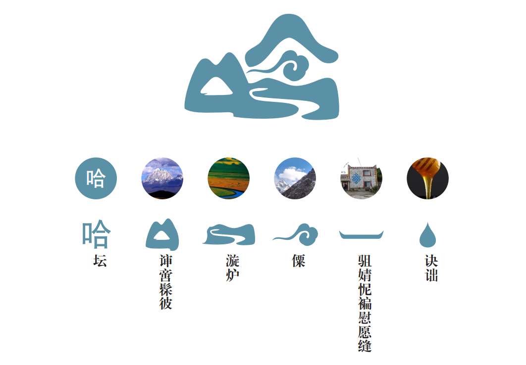 logo将云逸哈飘的"哈"字进行设计,整体既是一个哈字,又是阿坝州著名神山墨尔多神山,山下蜿蜒的河流从远处流过,山上飘着仙云,构成了一幅"远看山有色,静听水无声"的美丽画卷,让人流连忘返。