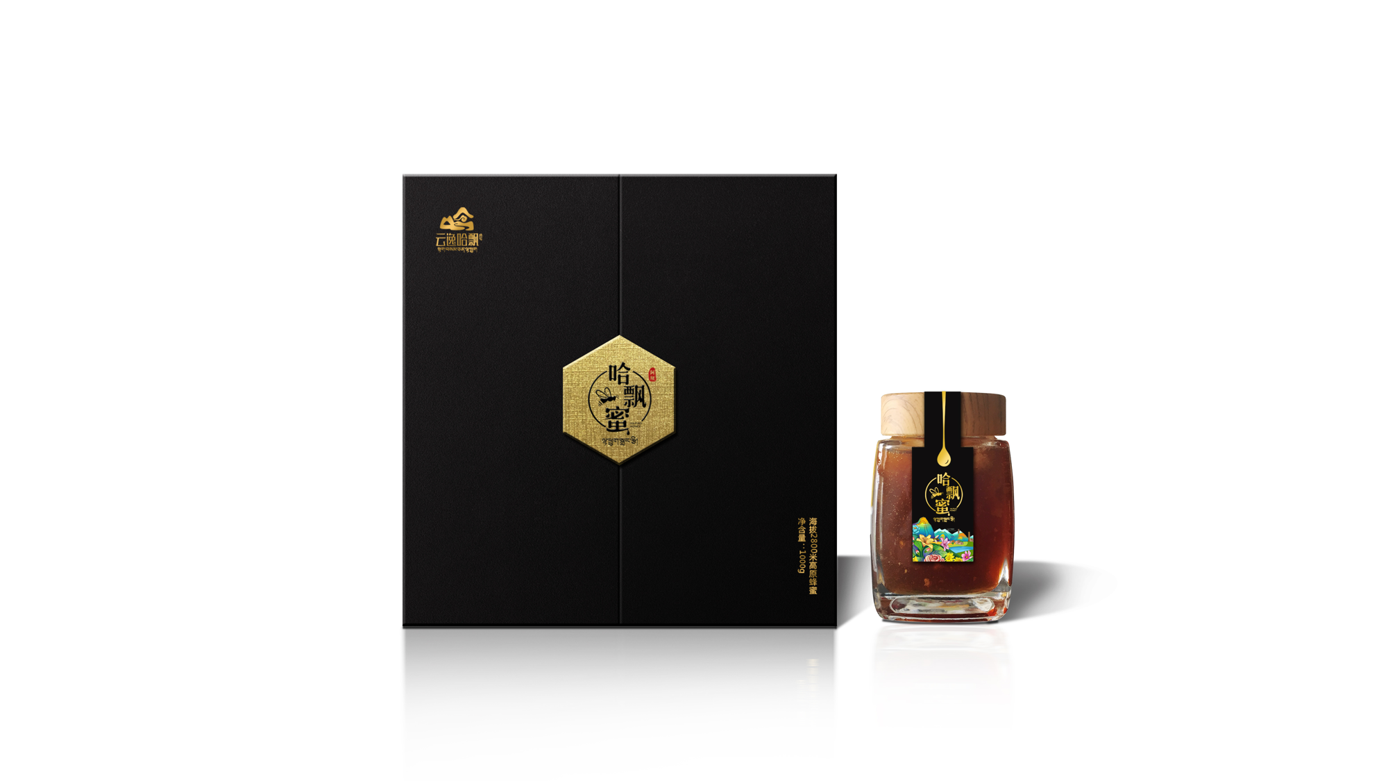 点缀金色logo与标志,更显简约、优雅、庄重、雍容。蜂蜜土特产包装设计,就应该从“土”走向“不土”。