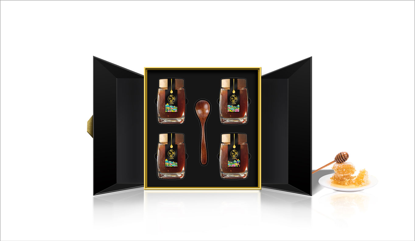 蜜品选用优质哈飘蜜源,原料更加考究,醇度更高,甜味更厚,营养更佳。