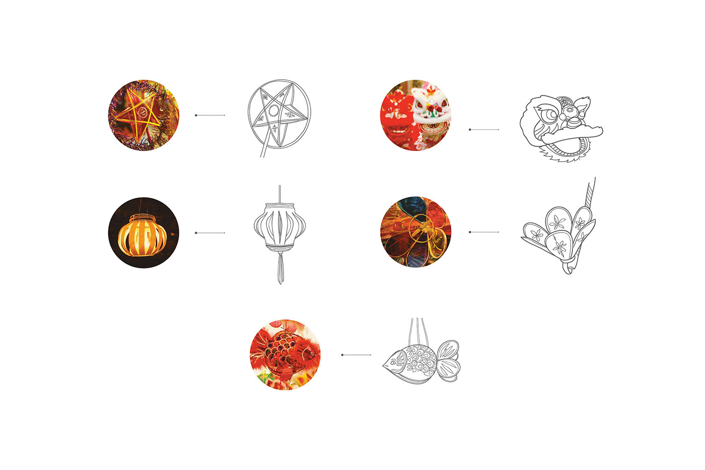 这款月饼包装设计重在创意,这些插图的灵感来自中秋节的特色物品,例如: