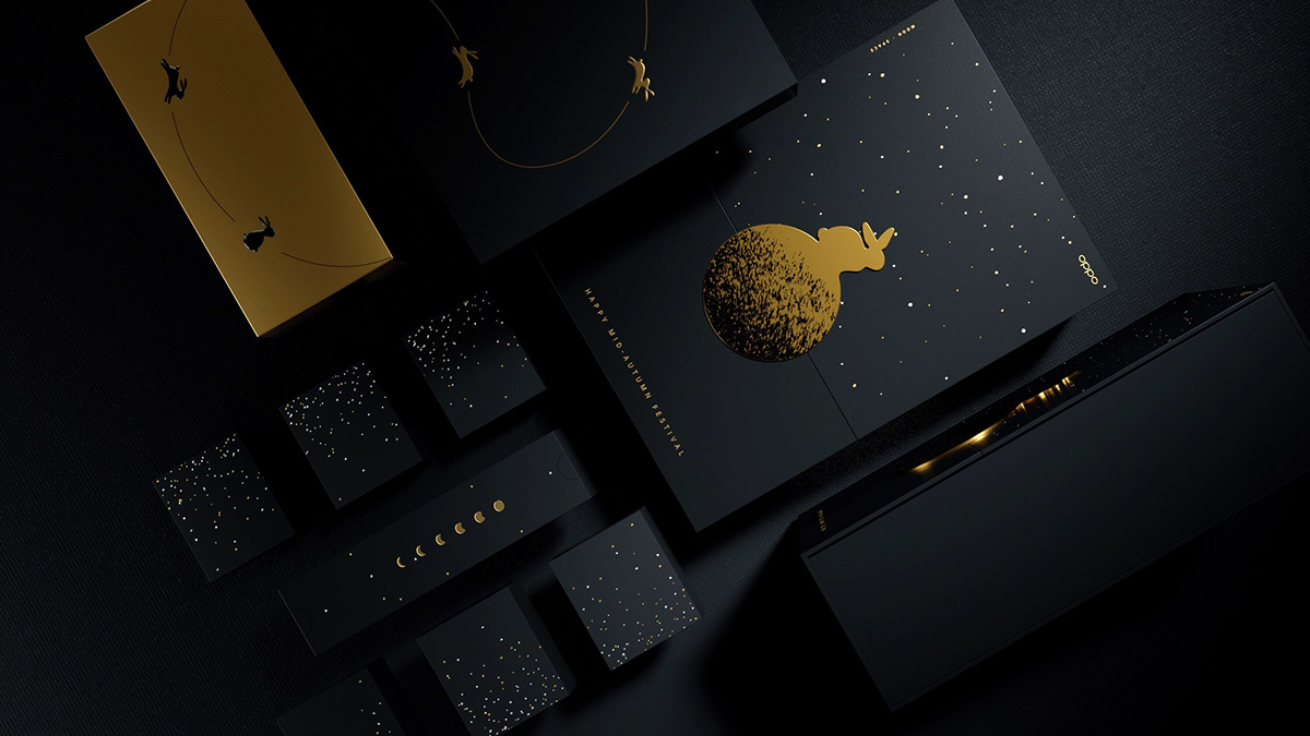 选取黑金作为主色调,以黑色玉兔和金色月球作为主要视觉元素,尽可能呈现极致的体验。