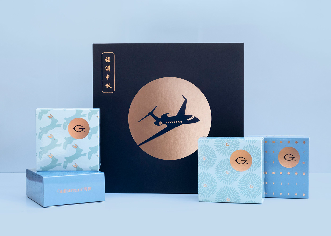 这是为湾流航空公司设计的2019年中秋节月饼包装。